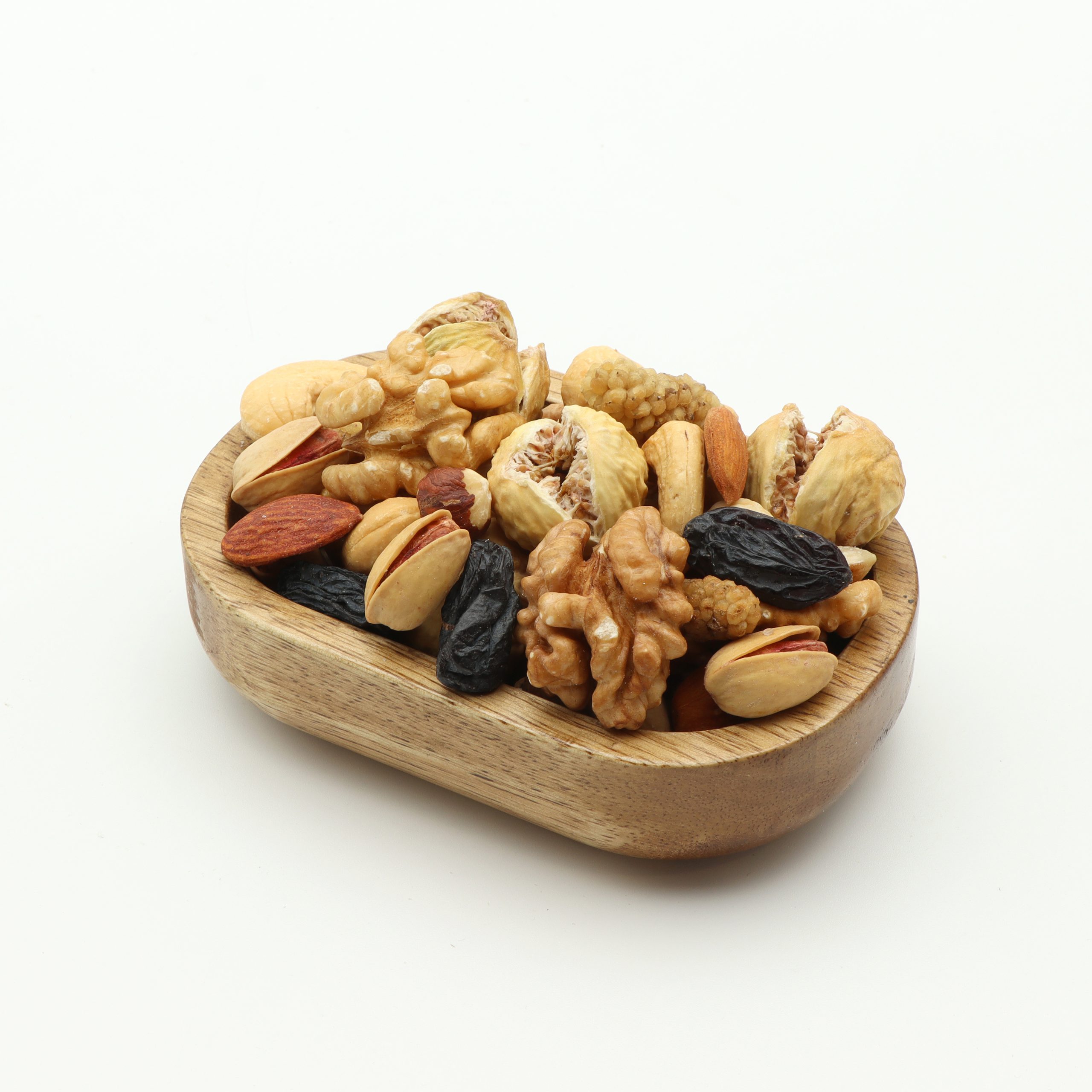 ترکیبات : توت، مویز، فندق بوداده بی نمک، انجیر سوپر، پسته اکبری، بادام شور ایرانی، بادام هندی بوداده بی نمک