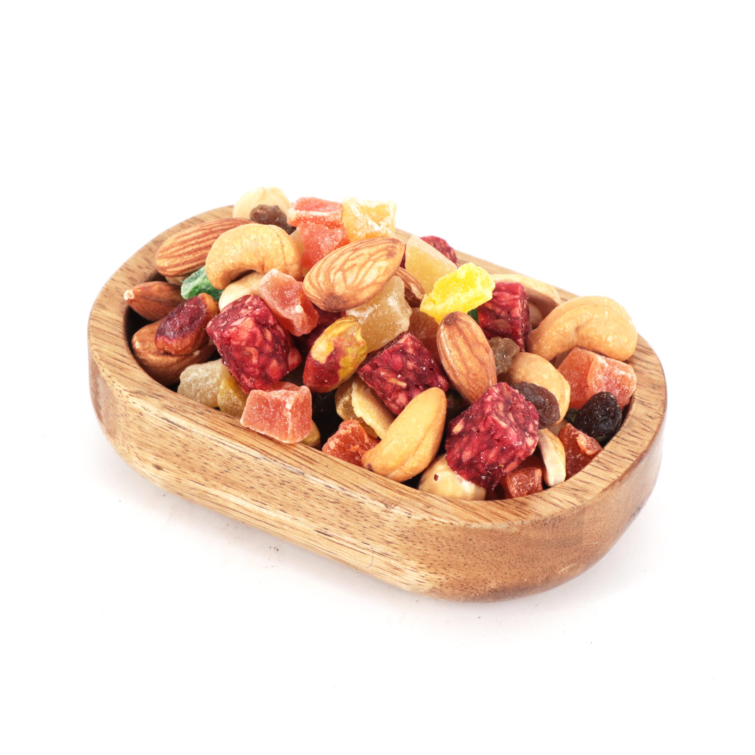 ترکیبات شامل : مغز پسته خام , بادام خارجی بوداده بی نمک , فندق خارجی بوداده بی نمک , کشمش سایه خشک , حبه میوه مخلوط , حبه استوایی مخلوط