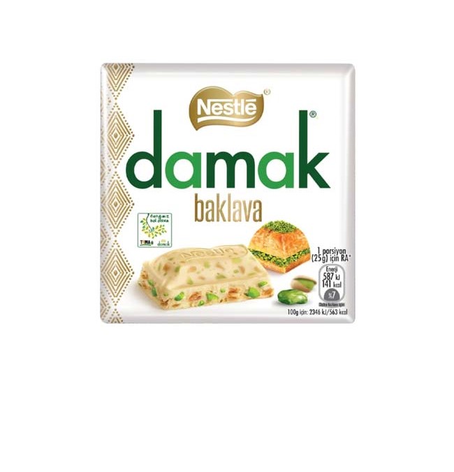شکلات تخته ای با مغز پسته و باقلوا داماک