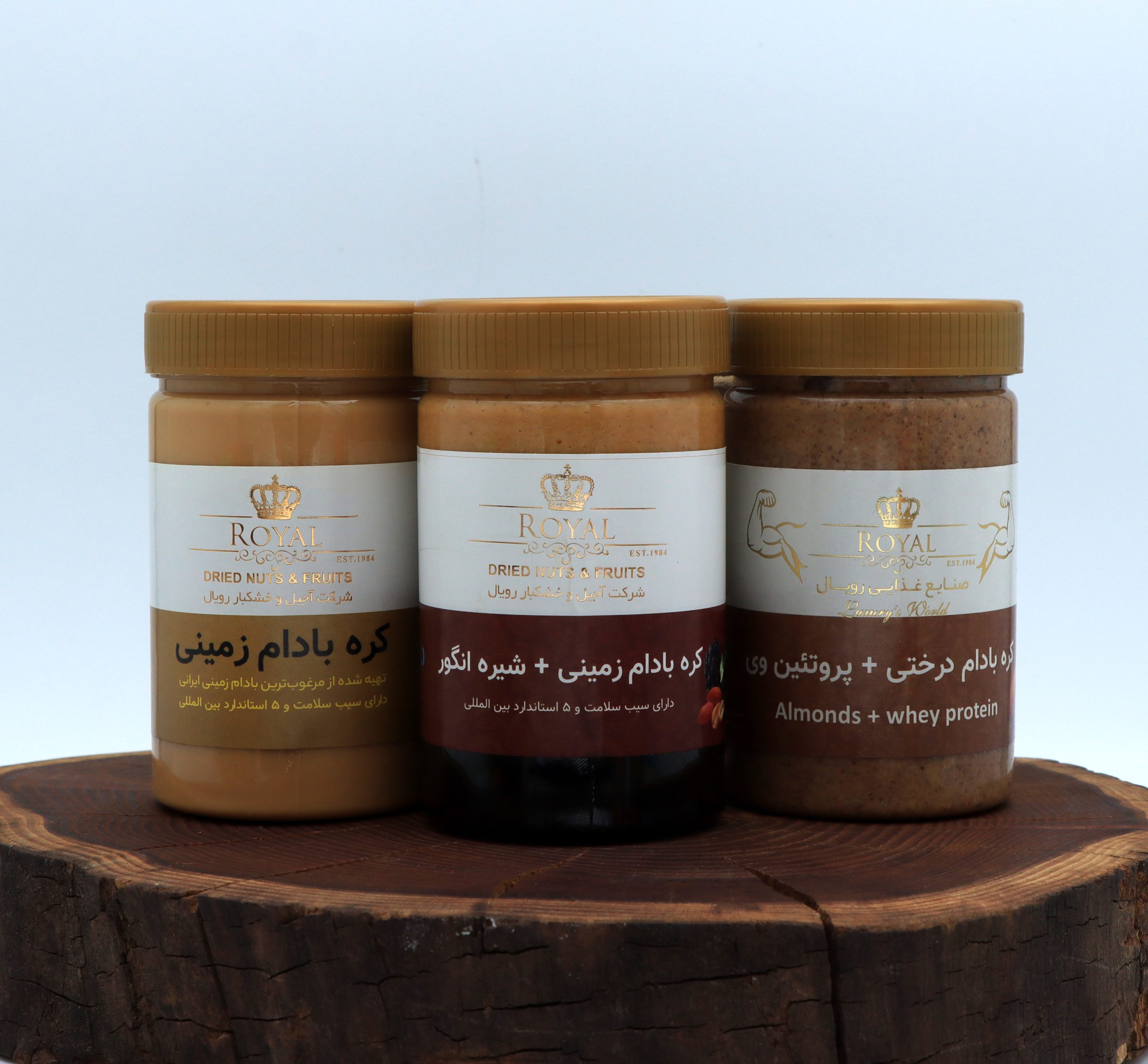 شامل : کره بادام درختی با پروتئن وی , کره بادام زمینی ساده , کره بادام زمینی با شیره انگور