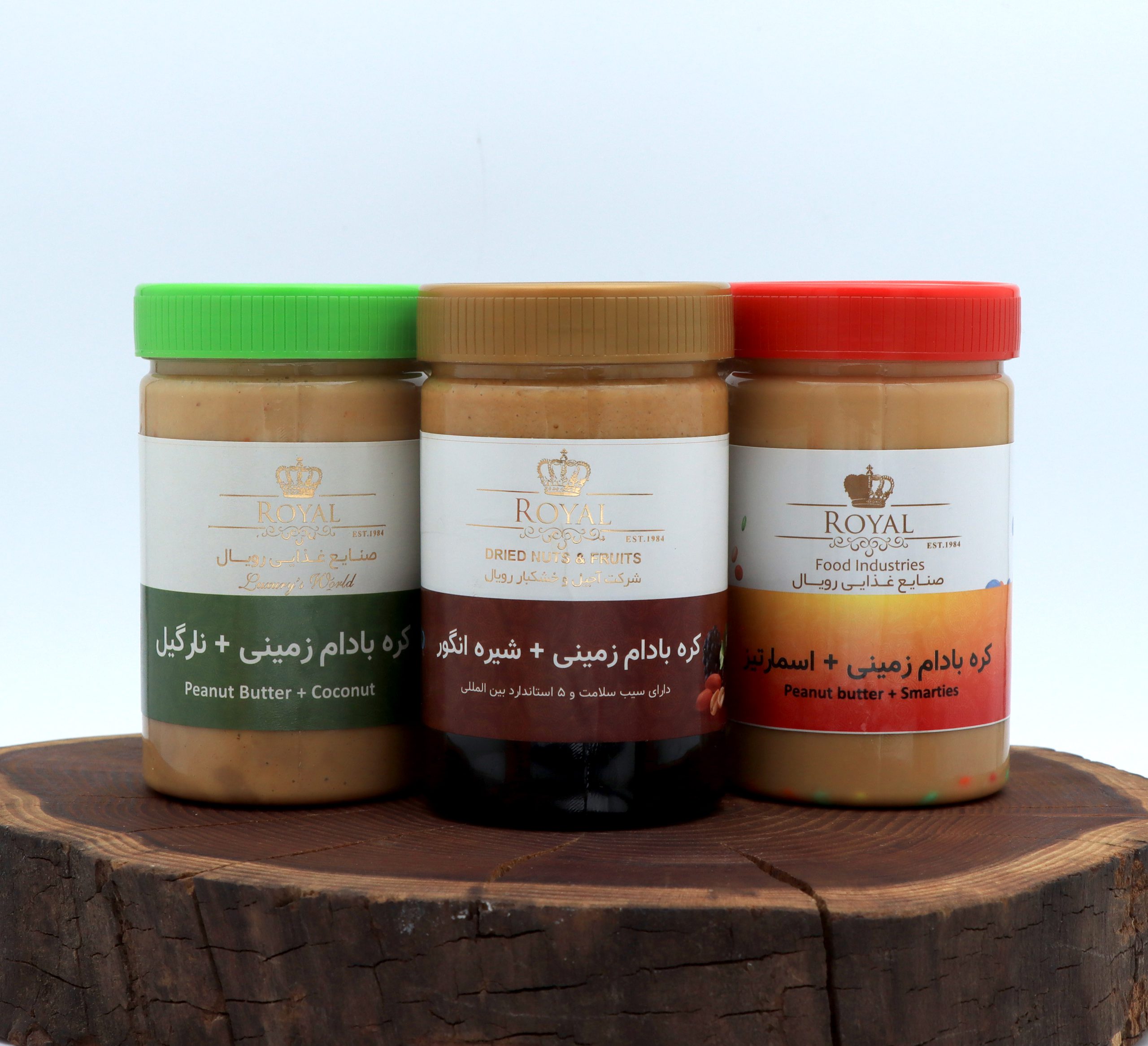 شامل : کره بادام و شیره انگور , کره بادام زمینی و نارگیل , کره بادام زمینی و اسمارتیز